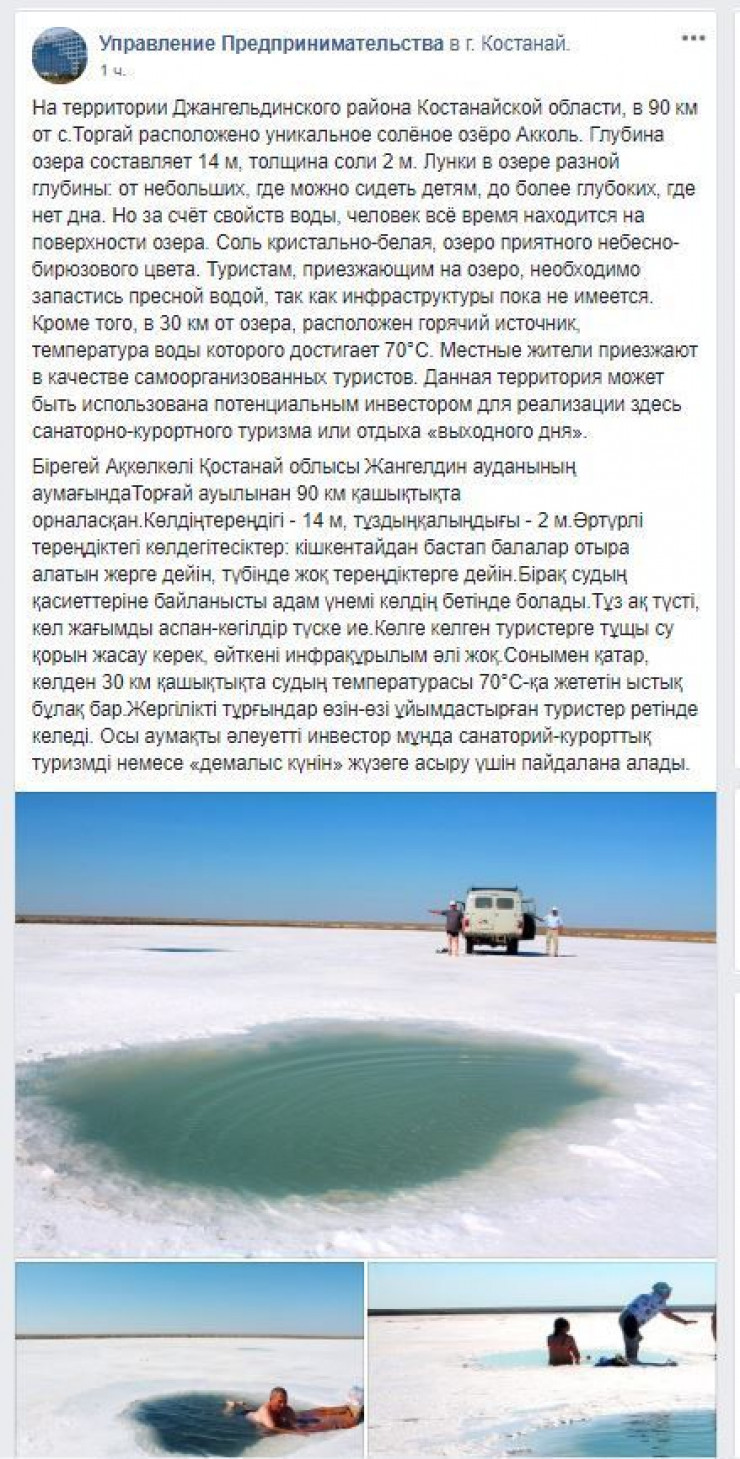 Скриншот Facebook/Управление предпринимательства Костанайской области. Позже пост был удален.