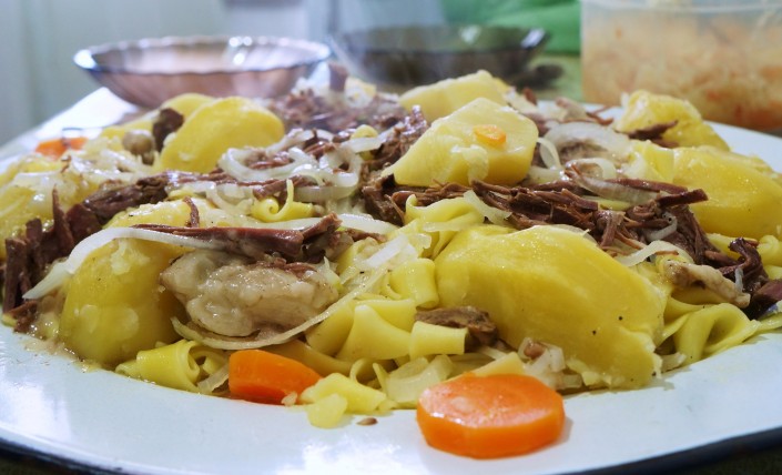 В Южно-Казахстанской области не так важно, чье мясо, главное - наисвежайшее. Поэтому у местных жителей очень близкие отношения с мясниками. Гарниром к мясу является тесто, картофель в блюде здесь встречается гораздо реже. Кстати, очень часто используется опаленная баранина, с которой не снимается кожа.