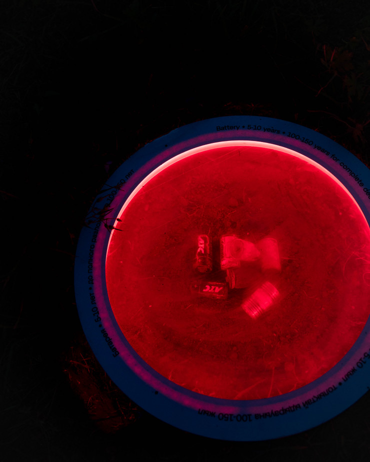 Инсталляция открыта для посещения с 19.00 до 21.00, когда включается подсветка экспонатов. По словам организаторов, этому мусору более 30 лет. Это определили по упаковке от известного напитка.