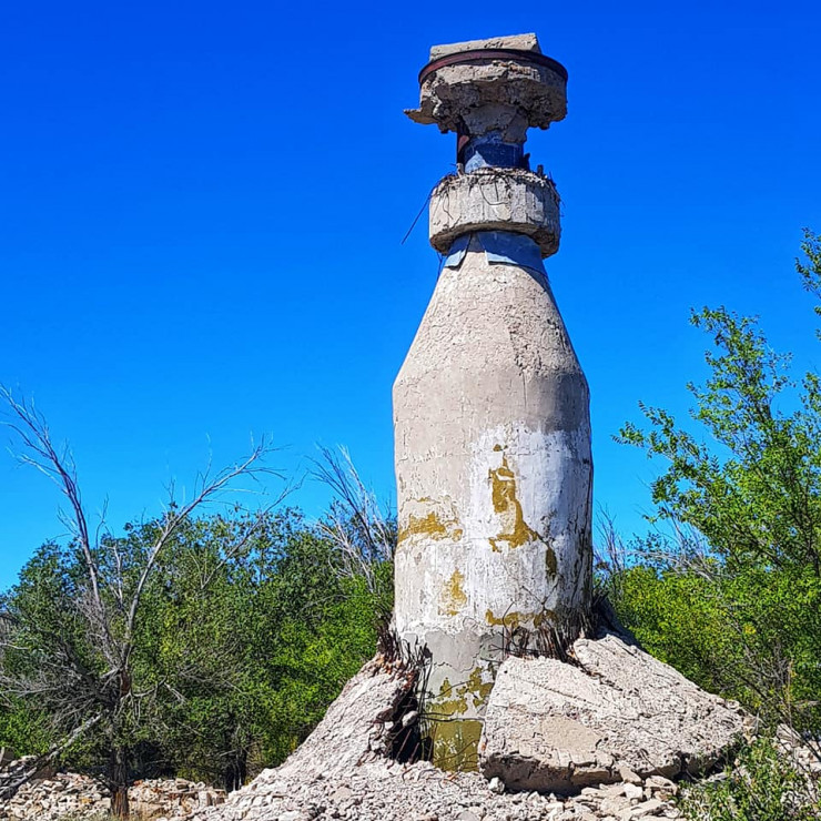 Мы посмотрели одну из площадок полигона, а затем заехали в городок под название Жем (ранее он назывался Эмба-5 и был закрытым городом, являясь административным центром полигона).