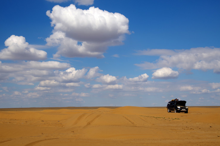 Жаманшын, появившийся около миллиона лет назад в результате падения метеорита, диаметр которого составлял около 500 метров, знаменит, главным образом, своими минералами, образовавшимися в результате того давнего столкновения. В общем, мы немного поиграли в охотников за сокровищами, но, очевидно, не очень успешно. Учитывая огромные размеры кратера, на местности (да и со спутника тоже) его практически не видно. Так что фоточек особо и нет.