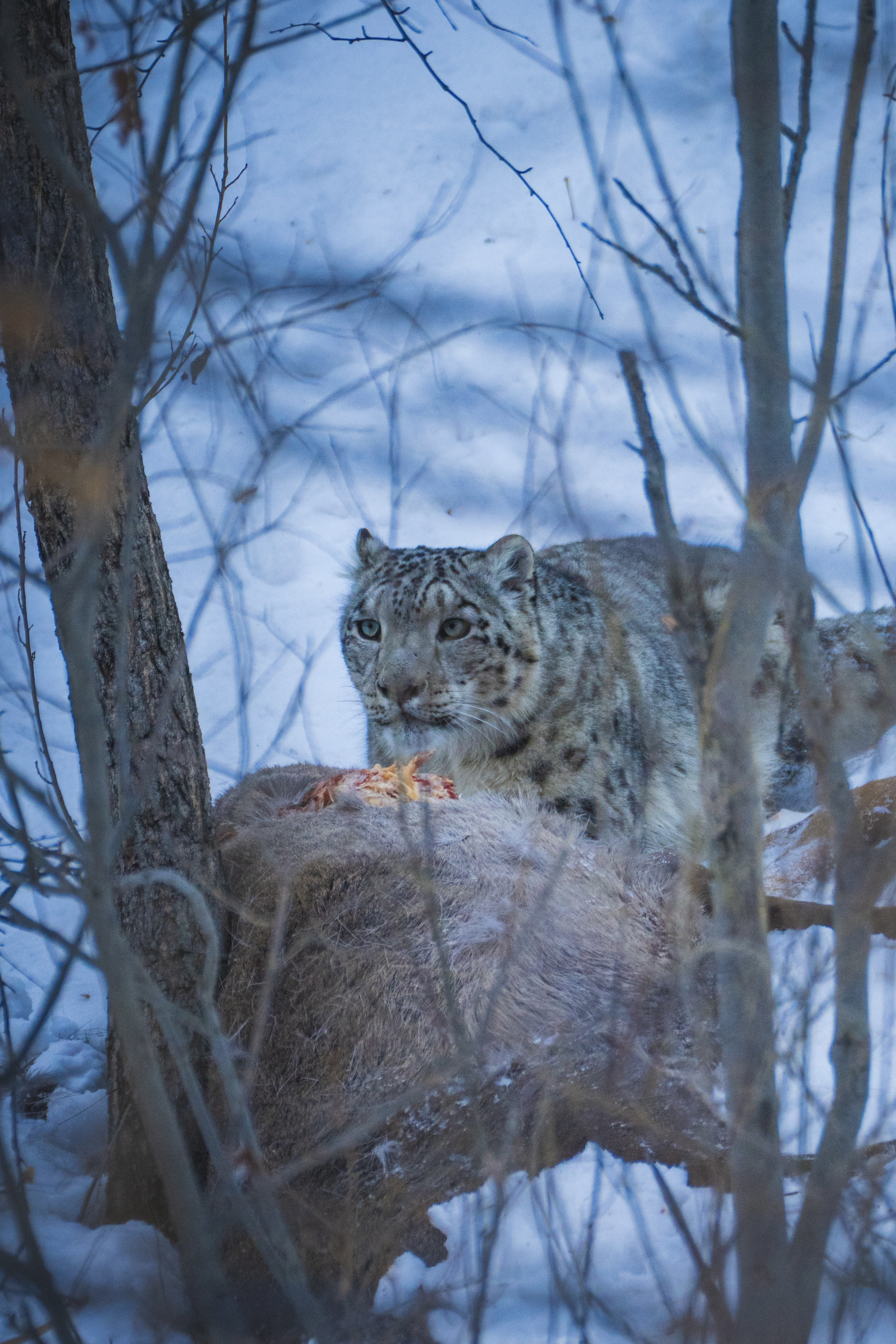 Уникальность случая не только в самой встрече, но и в локации: барс спустился на высоту около 1700–2500 метров. Обычно хищники крайне осторожны и попадают только в объективы скрытых фотоловушек высоко в горах. Барс в момент съемки был на охоте и поедал добычу.