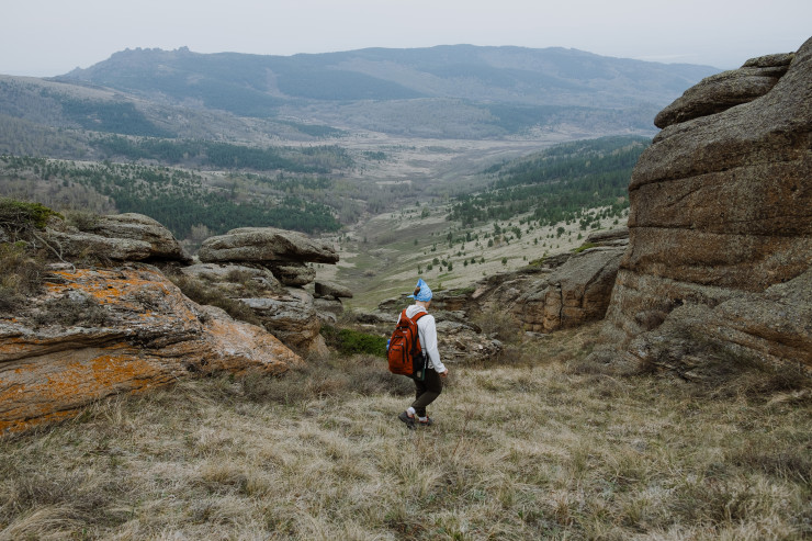 "Оставив машину на поляне, мы прихватили воды и отправились на прогулку. Вдоль гор мы вышли на протоптанную тропу, проходящую между хвойно-березовыми лесами, и направились к скалам. Путь до вершины у нас занял около полутора-двух часов, и, несмотря на засохшие кустарники и местами колючие ветки, мы добрались наверх. Там нас ждало потрясение. То, что мы видели внизу, и то, что мы увидели сверху, - два разных мира. С вершины все казалось бесконечным и наполненным жизнью. Мы были ошеломлены", - вспоминают туристки.