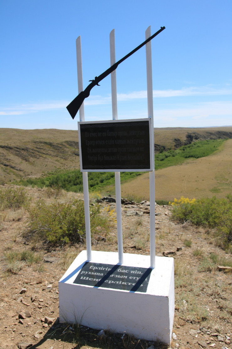 Данный факт и удостоверяет мемориал, установленный на скале чуть выше самого укрытия Кейки Кокембайулы, более известного как Кейки батыр - легендарного казахского стрелка, одного из предводителей повстанческой армии национального освободительного движения 1916-1917 годов.