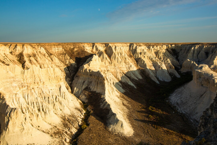 Плато Аккегершин – причудливые формы меловых отложений, где даже можно найти останки древних животных, буквально впечатанных в породу. Находится плато на границе Атырауской и Актюбинской областей, примерно в 245 километрах от города Атырау.