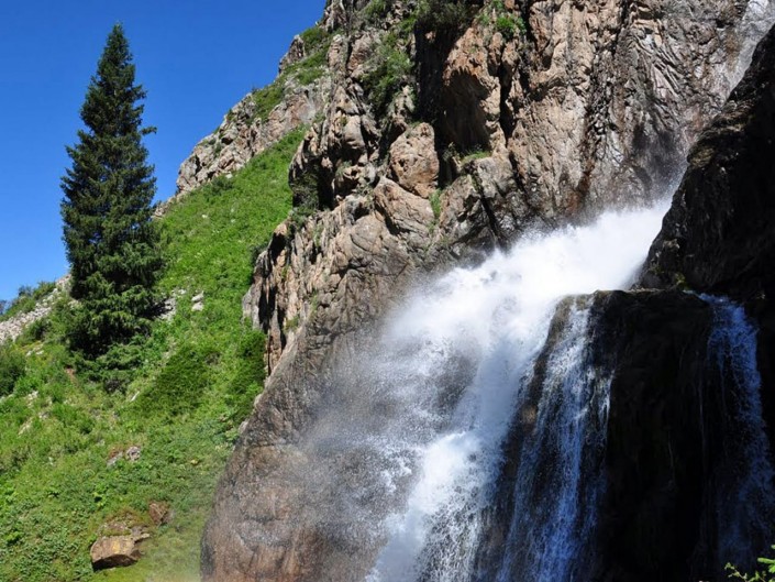 Например, водопад Бурхан-Булак. От всемирно известных водопадов он выгодно отличается тем, что находится рядом, в 400 километрах от Алматы. Не нужно оформлять заграничные визы, делать прививки от малярии и опасаться быть съеденным туземцами. Тут есть, конечно, свои подводные, а точнее горные камни, про которые я вам расскажу чуть позже.