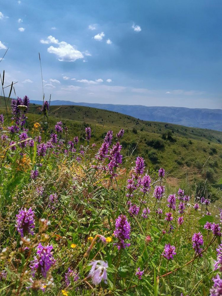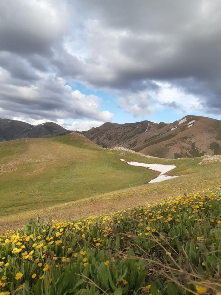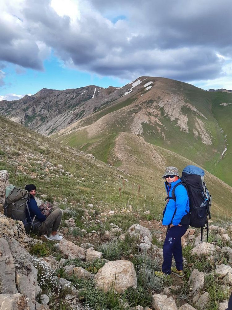 Начали маршрут из поселка Угам и одноименной реки Угам. В одну сторону шли около 15 километров. Это заняло примерно восемь часов. Сложность состояла в том, что точного маршрута никто из нашей команды не знал, ориентировались по карте и объяснениям знающих людей. Прошли через живописные цветущие луга, на которых частично лежал снег, поднялись на гребень 2 800 метров и прошли по нему, смотря на всю красоту Угама с высоты птичьего полета. Мы шли по лугам, и облака будто касались наших волос - настолько прекрасна и живописна природа Угама.
