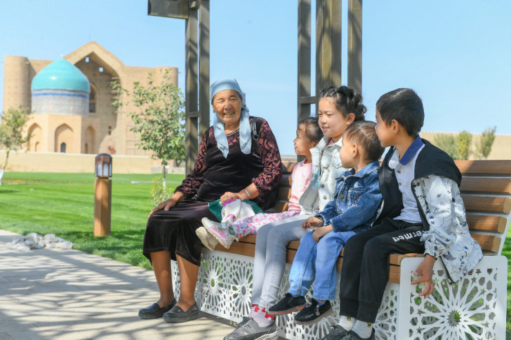 Туристы на фоне мавзолея Ходжи Ахмеда Яссауи. Фото КГУ "Туристский информационный центр Turkistan Tourism Center управления туризма Туркестанской области