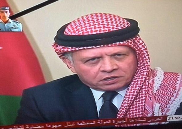 После известия о гибели пилота свой визит в США прервал король Иордании Абдалла II. Монарх назвал казнь Муаза аль-Касасбеха актом "трусливого террора". "Это (убийство пилота) - акт "трусливого террора" со стороны криминальной группы, которая не имеет отношения к исламу", - сказал Абдалла II, выступая по местному телевидению. Король призвал население объединиться в борьбе с терроризмом, заявив, что "иорданский пилот погиб, защищая свою веру и Родину. Иорданцы обязаны сплотиться воедино".