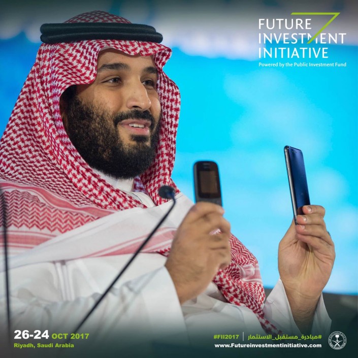 "Разница между тем, что мы имеем сейчас, и тем, чего мы хотим достичь, сравнима с разницей между этими двумя телефонами", - заявил наследный принц Саудовской Аравии Мухаммед бен Салман Аль Сауд во время презентации, демонстрируя старый кнопочный телефон и смартфон.