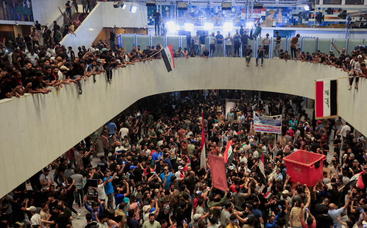 Как отметили в издании, протестующие ворвались в здание Совета представителей Ирака в Багдаде. Оно находится в "зеленой зоне" города - особо охраняемом районе, где расположены посольства и правительственные объекты. Отмечается, что, когда протестующие вошли в здание, там не было ни одного законодателя.