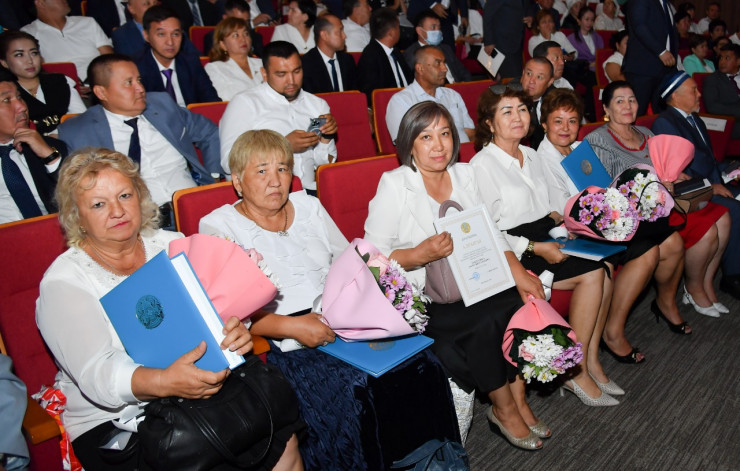Также учителям были вручены награды Министерства просвещения РК. По словам руководителя управления образования Туркестанской области Дінислама Болатханулы, в этом году в школах региона будут обучаться более 510 тысяч учащихся. Это самый большой показатель в республике: каждый 7-й ребенок учится в Туркестанской области. Чтобы решить проблему трехсменных и аварийных школ, в период с 2021 по 2025 годы в области планируется строительство 199 школ.