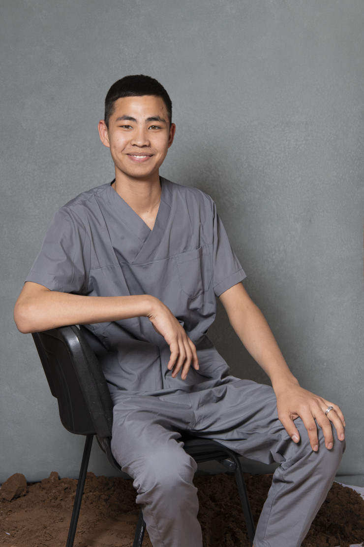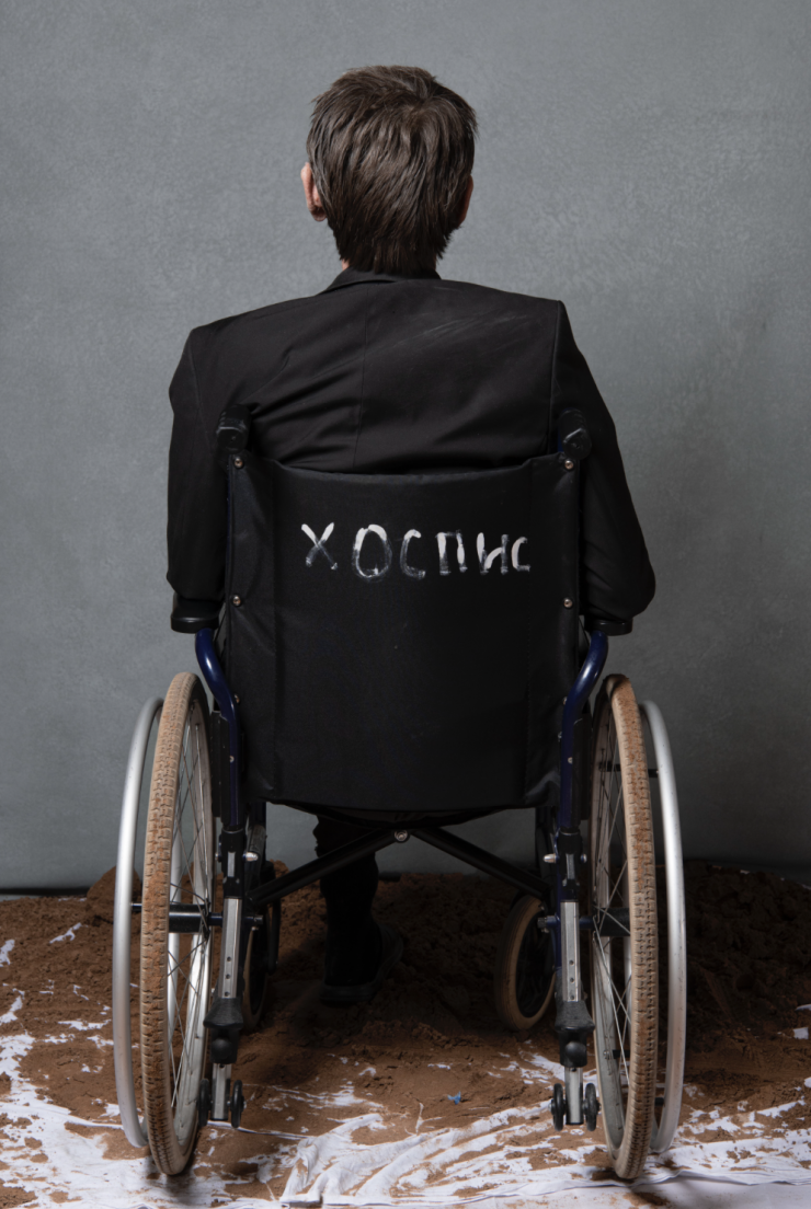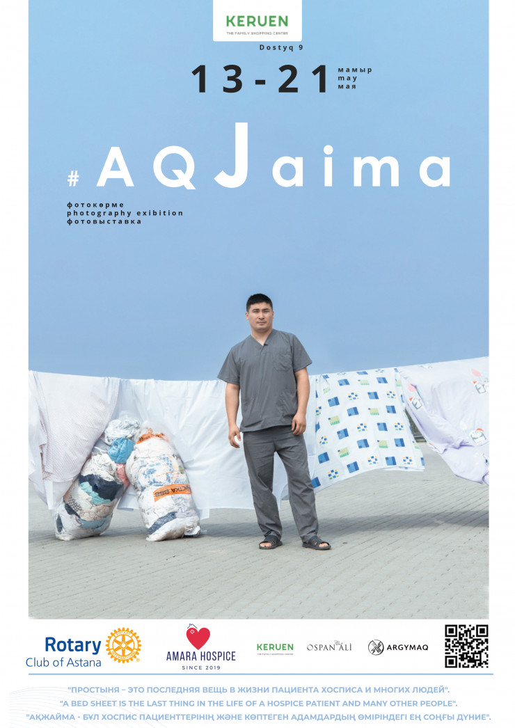Главным героем обложки фотовыставки стал санитар Адильбек Жаугашаров, человек со своей интересной историей. Он попал в хоспис вместе с мамой, которая оказалась прикована к постели после трех инсультов. Из-за его желания находиться всегда рядом с матерью Адильбека взяли на работу санитаром. Около трех лет он живет и работает в хосписе. Здесь ему выделили отдельную комнату и возможность находиться рядом с мамой. Также Адильбек наблюдает и за другими пациентами – помогает им следить за личной гигиеной, кормит, поддерживает чистоту в палатах.