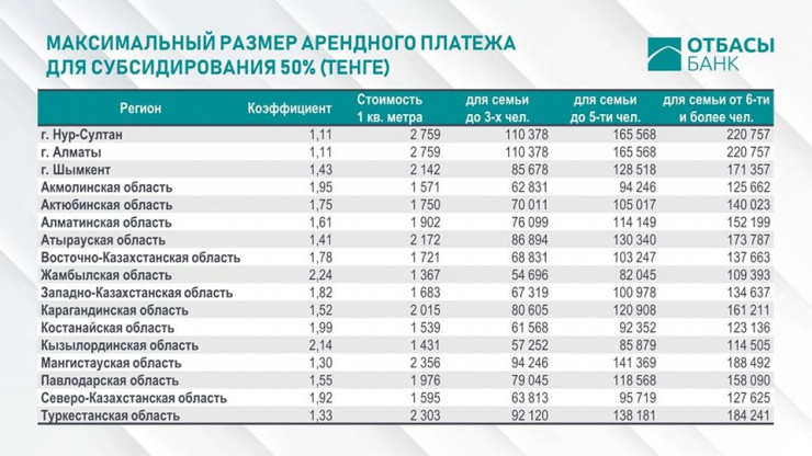 Новый инструмент позволит охватить примерно 70 тысяч семей, которые при средней сумме ежемесячной аренды в 120 тысяч тенге получат 50 процентов компенсации.