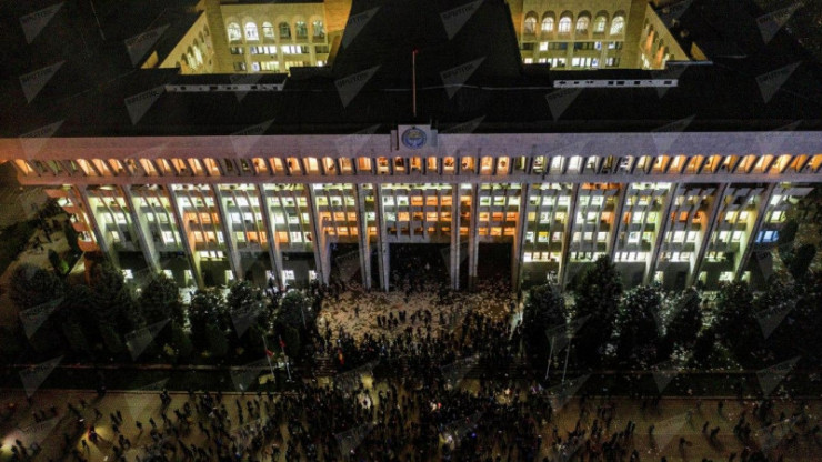 Митингіге шыққандар мен қарулы күштердің текетіресі сағат 20.00-ден бастап "Ақ үйге" басып кірумен аяқталды. Республиканың заңнамалық органына өтпей қалған партия жақтастары қақпаны жүк көлігімен бұзып, ішке кірді. Кейін Ақ үйде өрт шыққаны хабарланды.