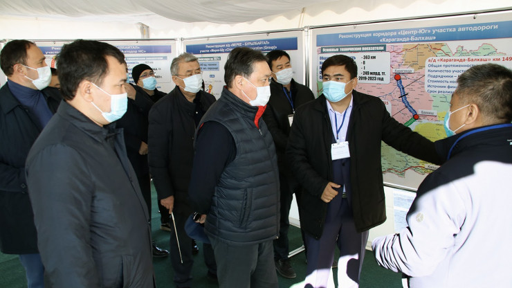 В Карагандинской области премьер-министр проинспектировал ход реконструкции автомобильных дорог Караганда – Балхаш – Бурылбайтал – Курты – Капшагай общей протяженностью 946 километров. В текущем году будет обеспечено движение по 765 километрам, по четырехполосной дороге.