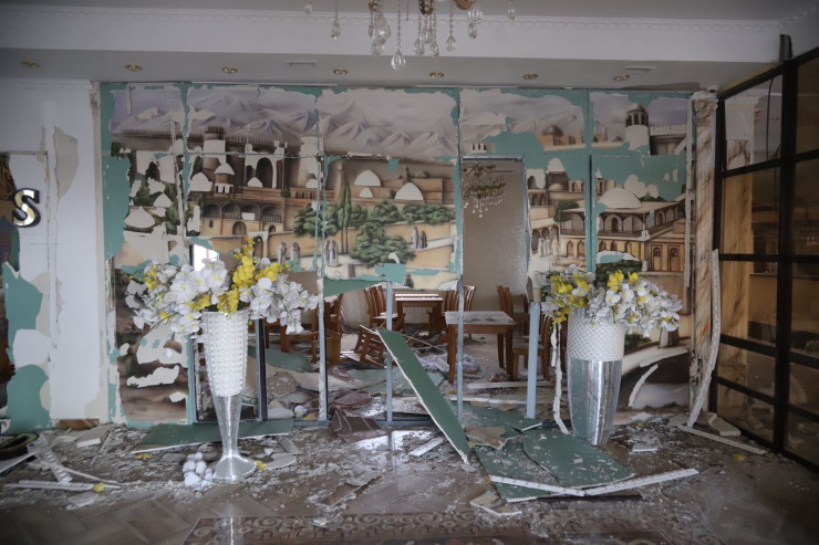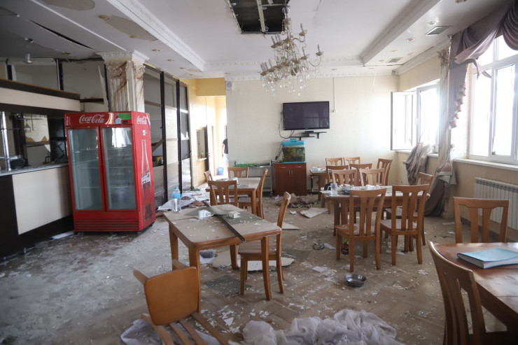 Мародеры обчистили придорожный комплекс после взрывов близ Тараза. Об этом корреспонденту Tengrinews.kz рассказала хозяйка комплекса "Тау Дос" Жанна Назарбекова. Комплекс попал под мощную ударную волну, так как находится буквально в 500 метрах от воинской части, где вчера случились взрывы. В заведении выбиты окна, обвалилась кровля, внутри сломана мебель и утварь.