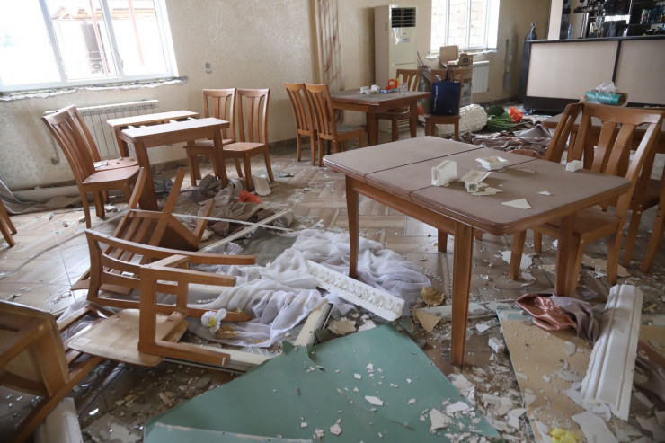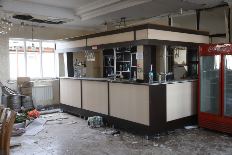 "Нас с супругом в это время там не было, мы как раз вчера уехали на лечение. Примерно к часам 6 вечера нам позвонили официанты. Они когда работали, произошел взрыв. Первой волной выбило стекла, люди падали, потом начали в панике бежать. Они все побежали на поле, кто-то побежал в Михайловку, это поселок рядом с нами. Потом уже началась подряд взрывная волна. Наш комплекс внутри почти полностью разрушен. Крыша, двери, окна -  все непригодное. Все имущество повреждено", - говорит хозяйка комплекса.