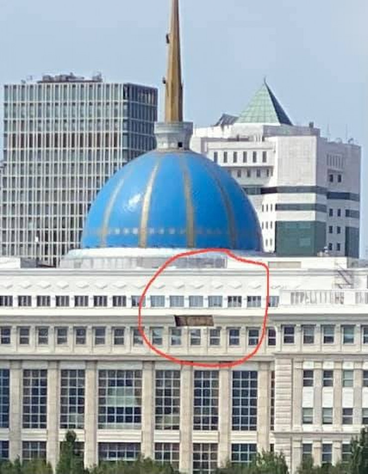 В Facebook блогер Азамат Ергали опубликовал фото, на котором видно обвалившуюся часть фасада резиденции Президента Акорды.