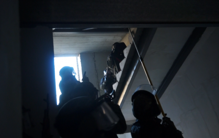 Бойцы спецназа вышли на исходные позиции для штурма.