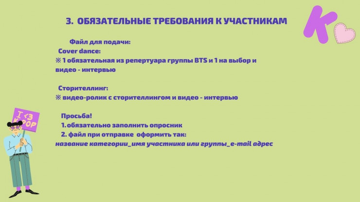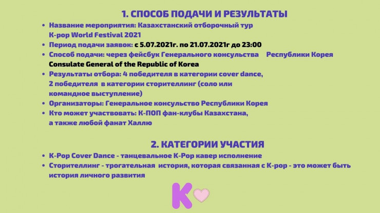 Кто может принять участие? Все любители K-pop - граждане Казахстана (соло или группа).