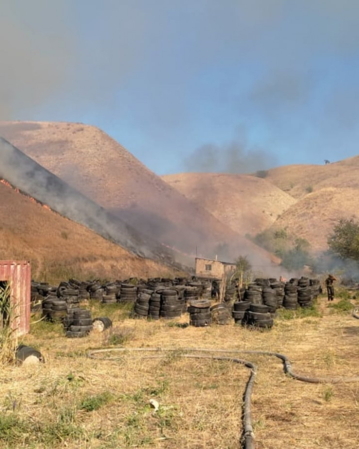 С северной стороны создалась угроза перехода огня на частный сектор и расположенные на его территории резиновые покрышки, на их защиту поданы пожарные стволы", - сообщили в ДЧС.