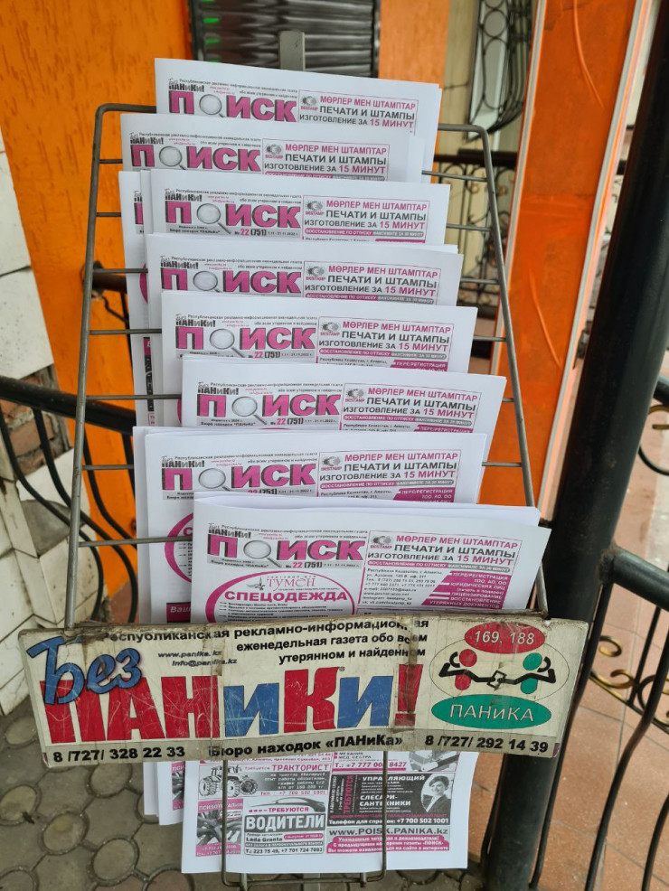 "Человек может находку оставить у нас, а может и не оставлять. Не оставляют, когда хотят получить вознаграждение. В этом случае мы записываем данные и находку человек забирает. Все найденные документы мы выставляем в Instagram, люди смотрят и потом уже обращаются к нам. Автомобильные номера к нам приносят, ключи, мы все это выкладываем, люди приходят, смотрят. Если кто-то находит свои вещи, то мы возвращаем. Возврат у нас платный. Согласно прейскуранту, к примеру, возврат удостоверения личности стоит 1500 тенге, водительских прав - 2000 тенге. Мы эти цены не поднимали уже около 20 лет. Раз в две недели мы выпускаем бесплатную газету "Поиск" тиражом 7500 экземпляров. Документы принимаем очень редко, и то когда люди приходят и оставляют, не хотят связываться. Всякие нюансы бывают. Кто-то, предположим, возвращает, а на него пишут заявление в полицию, бывает и такое. Сейчас люди боятся возвращать сами и оставляют у нас документы. Документы мы принимаем как положено, у нас есть журнал выдачи, там в графе "Поступление документов" мы фиксируем, кто что принес, и даем квитанцию", - рассказала оператор "ПАНиКа" Раиса Кузданова.