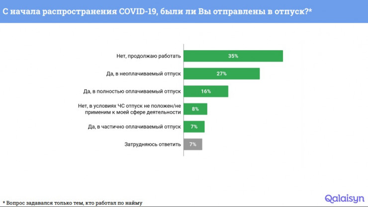Панель онлайн-опросов Qalaisyn.kz опубликовала данные опроса казахстанцев по ситуации с коронавирусом, передает Tengrinews.kz.