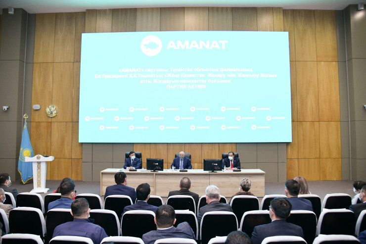 В Туркестане прошло заседание областного актива Туркестанского филиала партии Amanat. На заседании были рассмотрены вопросы исполнения задач, поставленных Президентом РК Касым-Жомартом Токаевым в Послании народу Казахстана. Председательствовал на совещании аким области, председатель областного филиала партии Amanat Умирзак Шукеев.