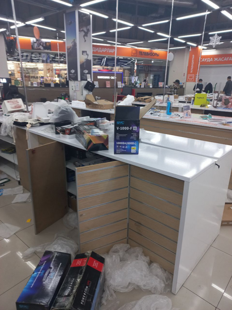 Кадры из магазина "Технодом", расположенного в молле "Апорт". 10 января 2022 года, Алматы.