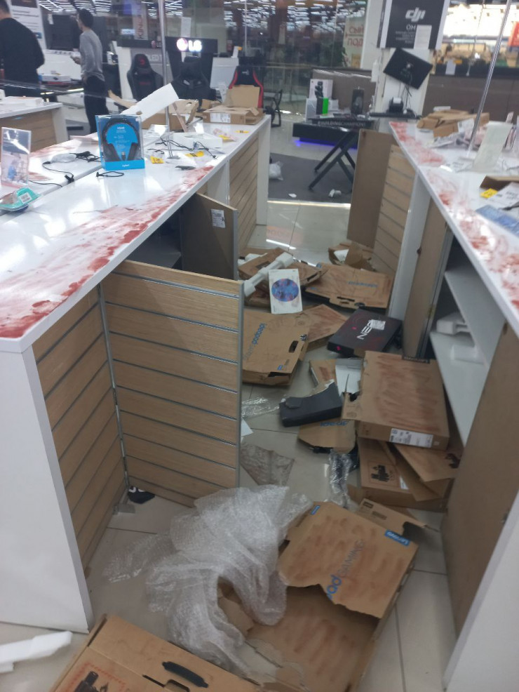 Больше всего пострадали магазины электроники. Мародеры выносили айфоны, ноутбуки и телевизоры. А крупную технику, которую не смогли вынести, просто разбили.