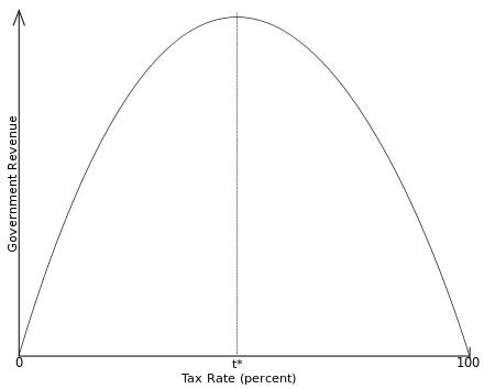 Эта идея также известна, как "Кривая Лаффера", которая показывает, что начиная с нулевой ставки налога увеличение налоговых ставок увеличит налоговые поступления правительства.