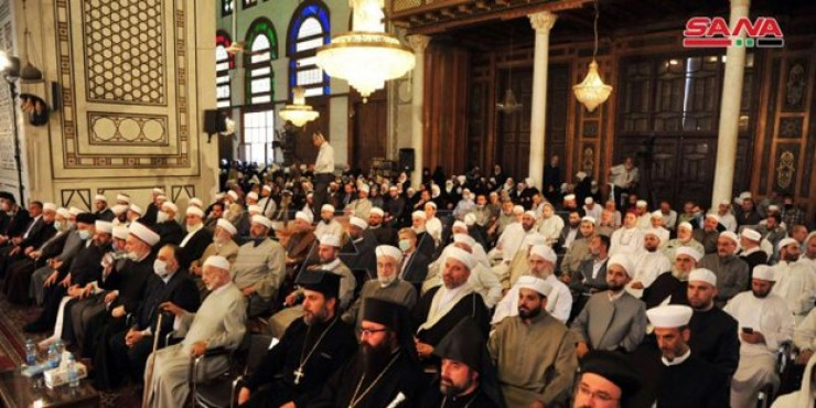 Лидеры религиозных общин собрались в Дамаске в поддержку президентских выборов. Фото агентства SANA