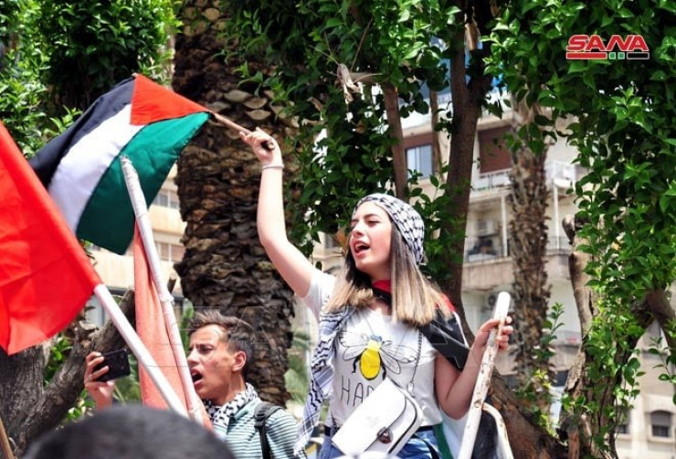 Палестинцы, проживающие в Сирии, также провели мероприятие, чтобы выразить свою лояльность и поддержку стране, которая принесла жертвы в защиту палестинского народа.