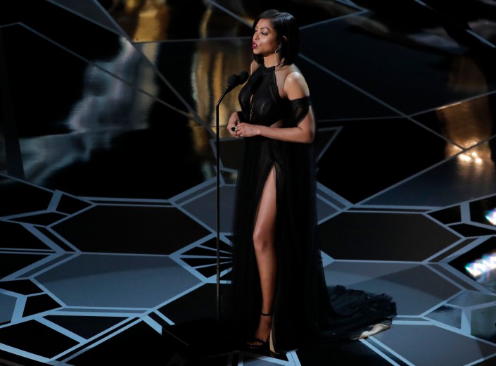 Платье Тараджи Хенсон многим телезрителям показалось неуместным - они отметили, что полупрозрачное платье смотрелось на актрисе безвкусно.