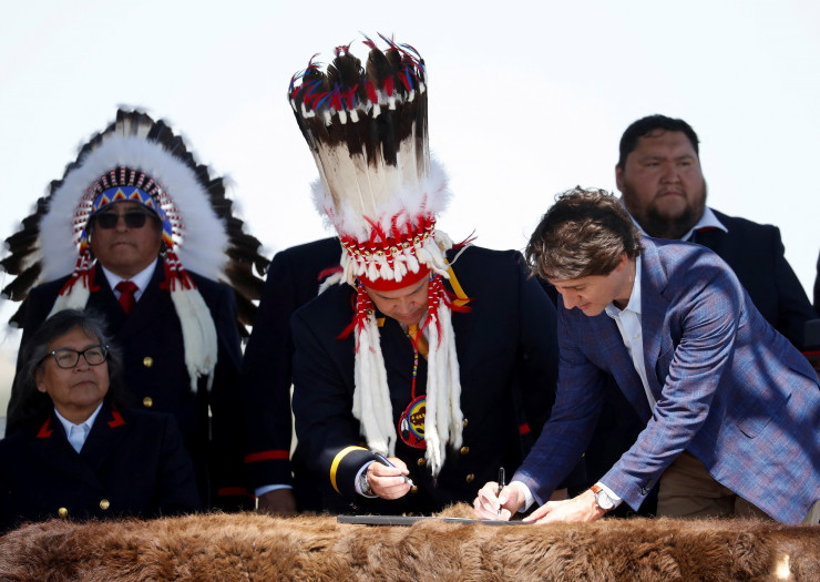 Премьер-министр страны Джастин Трюдо подписал историческое соглашение с представителями коренного народа сиксика (является одним из более чем 600 коренных американских народов Канады - прим.автора), проживающего к востоку от Калгари. В соответствии с этим документом им будет выплачена компенсация за землю. Отмечается, что это один из крупнейших договоров такого рода в стране.