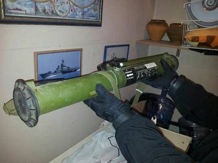 Кроме этого у мужчины были обнаружены РПГ-26 "Аглень" российского производства, гранаты и патроны к стрелковому оружию, паспорт гражданина России и несколько документов на разные фамилии. Также изъяты визитки российских высокопоставленных лиц министерства обороны России и Федеральной миграционной службы РФ.