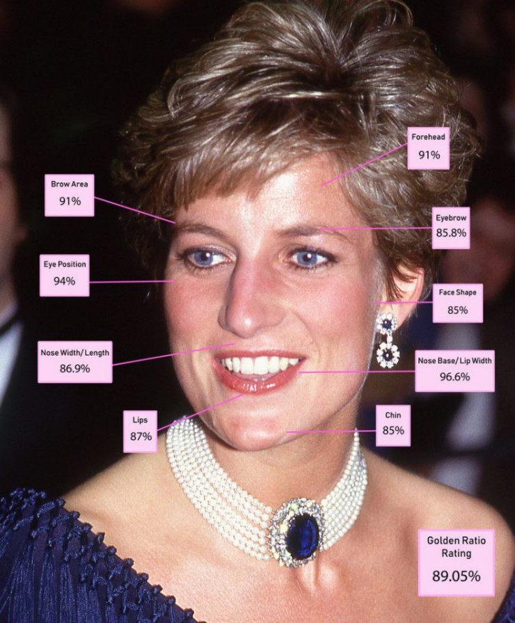 Сообщается, что доктор использовал новейший метод компьютеризированного картографирования. Благодаря этому методу выяснилось, что черты лица принцессы близки к идеальному соотношению - 89,05 процента из ста.