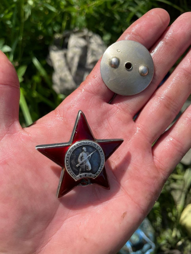 "При погибших нет личных опознавательных знаков, но в этой же воронке нашли орден Красной Звезды, на обратной стороне отчетливо виден номер, а это значит, что сможем установить имя солдата, который был им награжден", - рассказал командир отряда "Майдан жолы" Александр Шитов.