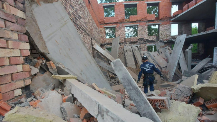 По предварительным данным, площадь обрушения составила по 60 квадратных метров на двух этажах.