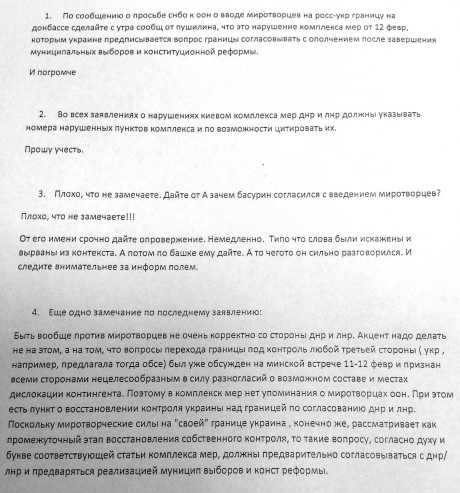 В приведенном выше документе, в частности, говорится о том, что решение о приглашении на Украину миротворческого контингента ООН противоречит мирным договоренностям. "Именно такими циркулярами этот гражданин РФ нарушает законы и нашего государства, и, кстати, законы своей собственной страны", - прокомментировал Наливайченко.