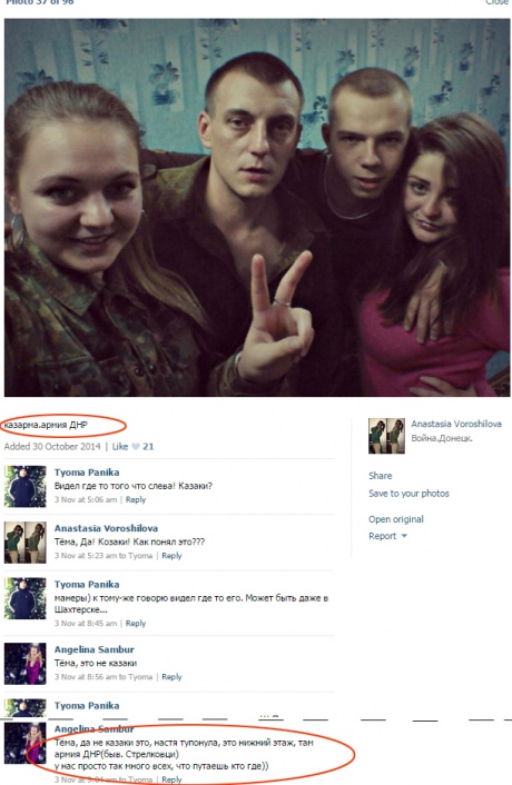 На одной из своих странице она также опубликовала фото, где она вместе с другой "коллегой" под ником Ilona Leto с оружием находятся в Славянске. Фото датировано декабрем 2014 года.