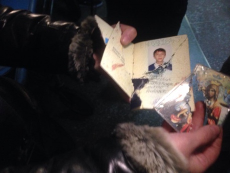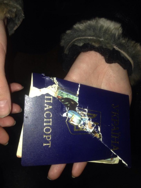 Позже председатель Киевской районной администрации Донецка Иван Приходько разместил в соцсети фотографии раненых подростков и также пострадавшего во время обстрела украинского паспорта вместе с иконой.