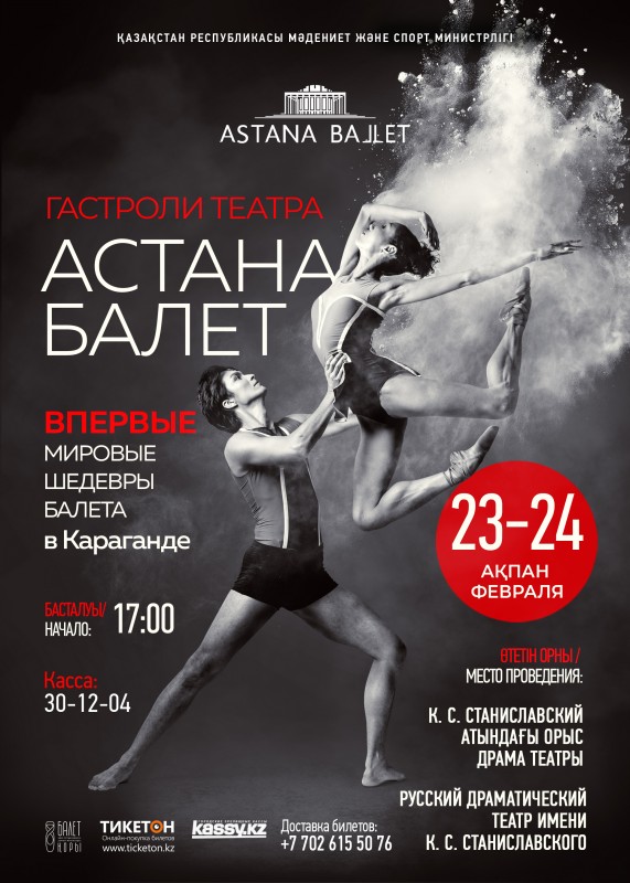 23 и 24 февраля творческий коллектив "Астана Балет" в рамках запланированных гастролей по городам Казахстана сменит столичную сцену на подмостки русского драматического театра имени Константина Станиславского в Караганде. В эти дни жители и гости одного из крупнейших культурных центров Казахстана смогут увидеть лучшие спектакли из репертуара театра – шедевры мирового балета.