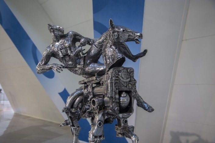 - Даир Тулеков, "Разговор (Апашки)", алюминий, литье, 200х68х33 см
