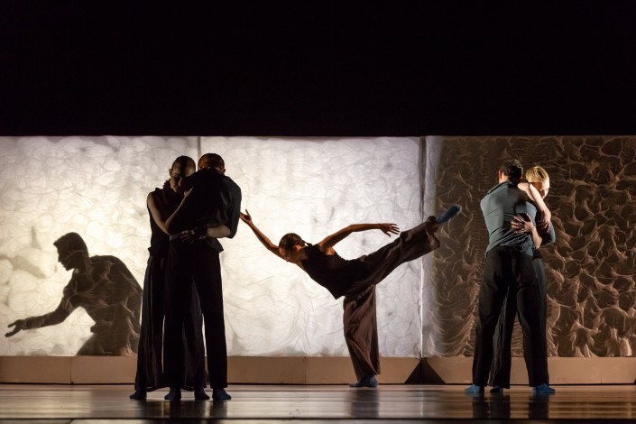 Постепенно срывая бумагу, героиня как бы заглядывает в себя, в свою память, счищает с нее патину времени, плесень забвения, пытаясь найти там свои корни, детство, воспоминания. Они и возникают за стеклом, игра с освещением и качество стекла дают возможность одновременно увидеть и отражение танцовщиков, стоящих перед ним, и тех, кто стоит позади.