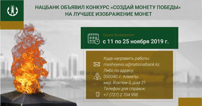Национальный Банк Казахстана объявляет открытый конкурс на лучшее изображение монет на тему "75 лет Победе", передает Tengrinews.kz.
