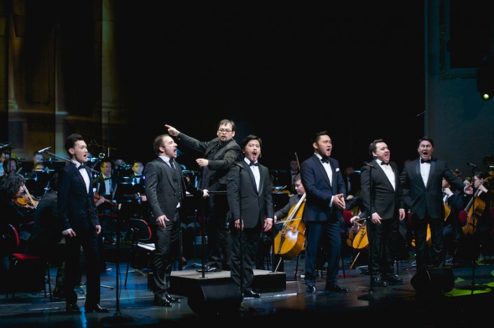 Ведущие солисты предстали перед публикой в новом качестве. Впервые на сцене звучали арии и сцены из оперетт в исполнении звезд оперной сцены - Медета Чотабаева, Жаннат Бактай, Талгата Мусабаева, Жаната Шыбыкбаева, Бибигуль Жанузак и многих других. Публике представили терцет из оперетты "Летучая мышь", "За что, о, Боже мой…" И. Штрауса, септет из оперетты "Веселая вдова" Ф. Легара, дуэт Папагено и Папагены из оперы "Волшебная флейта" В.А. Моцарта и многое другое.