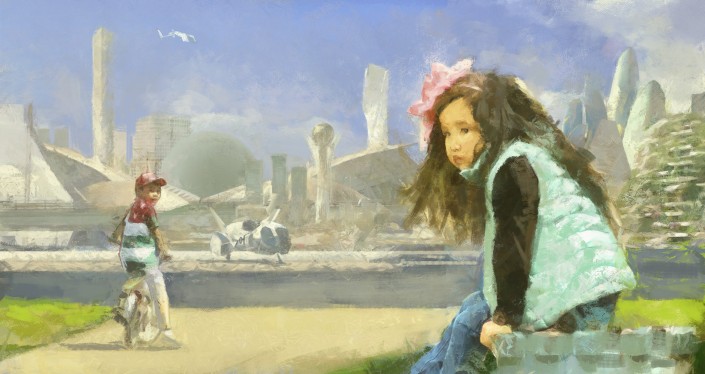 А Данияр Кдыров нарисовал весну в Нур-Султане будущего. Но центральное место на его рисунке заняли образы детей.