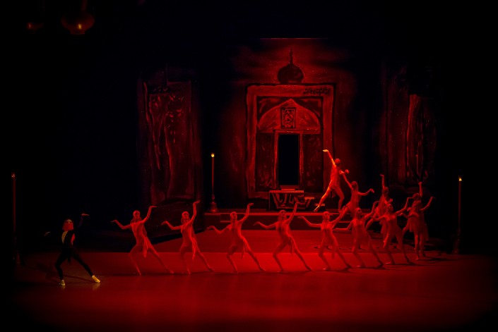 Но все же главным здесь остается хореография. От внимания публики не ускользнуло ни одно движение артистов, рассказывающее о безграничной власти царицы Мехменэ Бану и мире таинственного восточного искусства, который олицетворяет художник-каменотес Ферхад, о мудрости и горе, о любовном ослеплении, беззащитности чувств и самоотверженности. Зрители по достоинству оценили сцены никнущего к земле кордебалета женщин с кувшинами, позволяющие ощутить страдания, которые испытывает народ, не оставила равнодушной и гигантская картина шествия, в которой заняты десятки танцовщиков кордебалета – олицетворение власти Мехменэ, сметающей со своего пути все живое.